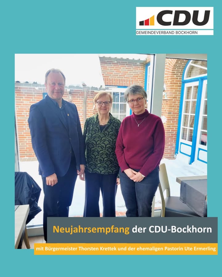 Der diesjährige Neujahrsempfang der CDU Bockhorn stand wieder ganz im Zeichen des Ehrenamtes.Die Gemeindeverbandsvorsitzende Doris Meinen zitierte Abraham Lincoln:"Die beste Möglichkeit, die Zukunft vorherzusagen, besteht darin, sie zu gestalten."Sie rief dazu auf, sich aktiv einzubringen und bei der Kommunalwahl am 13. September 2026 für den Gemeinderat zu kandidieren 🗳️Bürgermeister Thorsten Krettek dankte den Landwirten, die den Bauhof der Gemeinde tatkräftig und ehrenamtlich beim Schneeräumen unterstützt haben! 🙏🏻 ❄️Als Gastrednerin erläuterte unsere ehemalige Pastorin Ute Ermerling, dass es in unserer Gesellschaft häufig an Demut in ihrer ursprünglichen Bedeutung fehle ? dem "Mut zu dienen".Das Ehrenamt stelle sich im besten Sinne in den Dienst der Menschen und mache den entscheidenden Unterschied auf dem Weg zu einer wieder gelingenden Gesellschaft.Passend dazu stellte sie ihr Projekt vor, bei dem sie gemeinsam mit bisher neun weiteren Mitstreiterinnen und Mitstreitern aktuell in der Vereinsgründung ist. Ziel ist es, Räume zu schaffen, in denen Menschen sich begegnen und gemeinsame Ideen verwirklichen können 💭✨Dafür werden noch geeignete Räumlichkeiten in Bockhorn gesucht!
